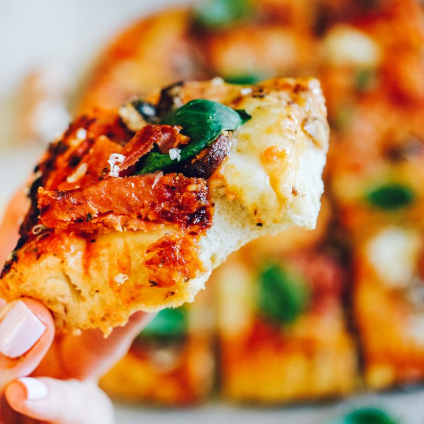 „Šios picos principas yra toks – kepame vieną didelę kvadratinę picą, iškepusią supjaustome gabalėliais ir mėgaujamės visi kartu. Tokia pica atstoja maždaug keturias porcijas, tad jos užtenka visai šeimai arba nedidelei draugų kompanijai“, – pasakoja žinoma tinklaraštininkė ir dalijasi picos receptu.