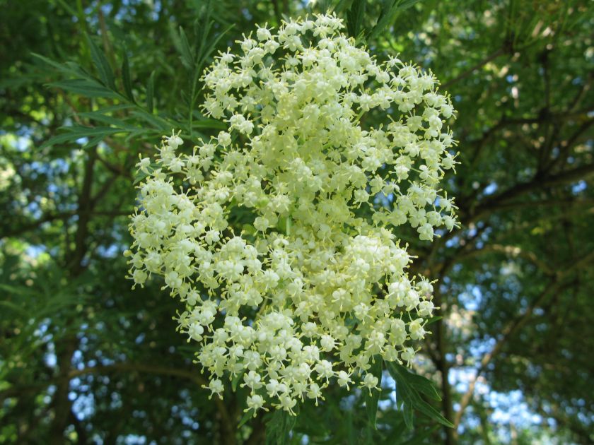 Šis daugiametis 2-6 m aukščio krūmas kartais išauga ir kaip medis, iki 8 m. Jo šakutės pilkai žalsvos, plikos ar kiek plaukuotos, nusėtos didelėmis tamsiomis karputėmis. Senesnių augalų šakų žievė sueižėjusi, pilkai ruda. Šerdis minkšta, puri, stora, balta. Lapai stambūs, sudėtiniai, neporomis plunksniški, sudaryti iš 5 arba 7 lapelių, nemalonaus kvapo. Žiedai smulkūs, balti arba gelsvi, susitelkę šakučių viršūnėse skėtiškuose tankiuose žiedynuose, stipraus specifinio kvapo. Vaisiai – juodi, blizgantys, apvalūs, uogos pavidalo kaulavaisiai su raudonai violetiniu minkštimu.