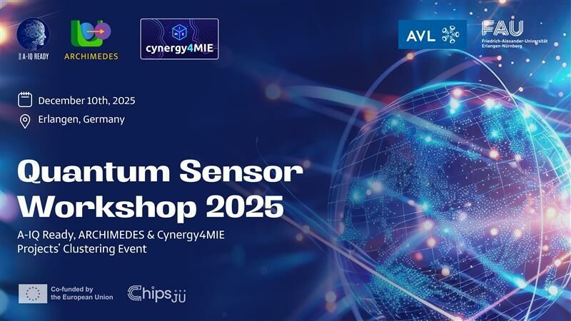 The workshop was jointly organised by Katrin Al Jezany and Reiner John (AVL List GmbH), together with Prof. Dr.-Ing. Roland Nagy from the Institute of Applied Quantum Technologies at FAU Erlangen-Nürnberg, within the framework of the Chips Joint Undertaking co-funded projects A-IQ Ready, ARCHIMEDES and Cynergy4MIE. Representatives from these initiatives, along with partners from the MOSAIC project, presented progress across the entire chain of applications within the Chips JU programme.