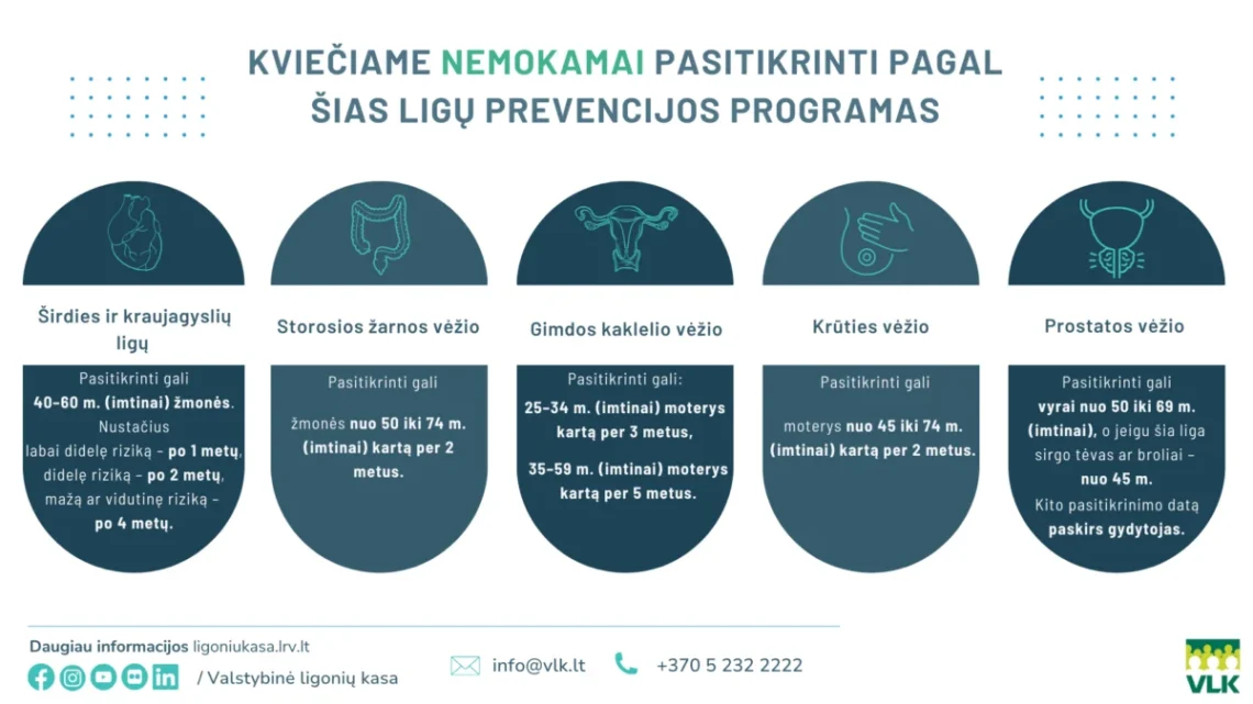 Daugiau apie visas fondo lėšomis finansuojamas prevencines programas bei dalyvavimą jose galima sužinoti ligonių kasos interneto svetainėje.